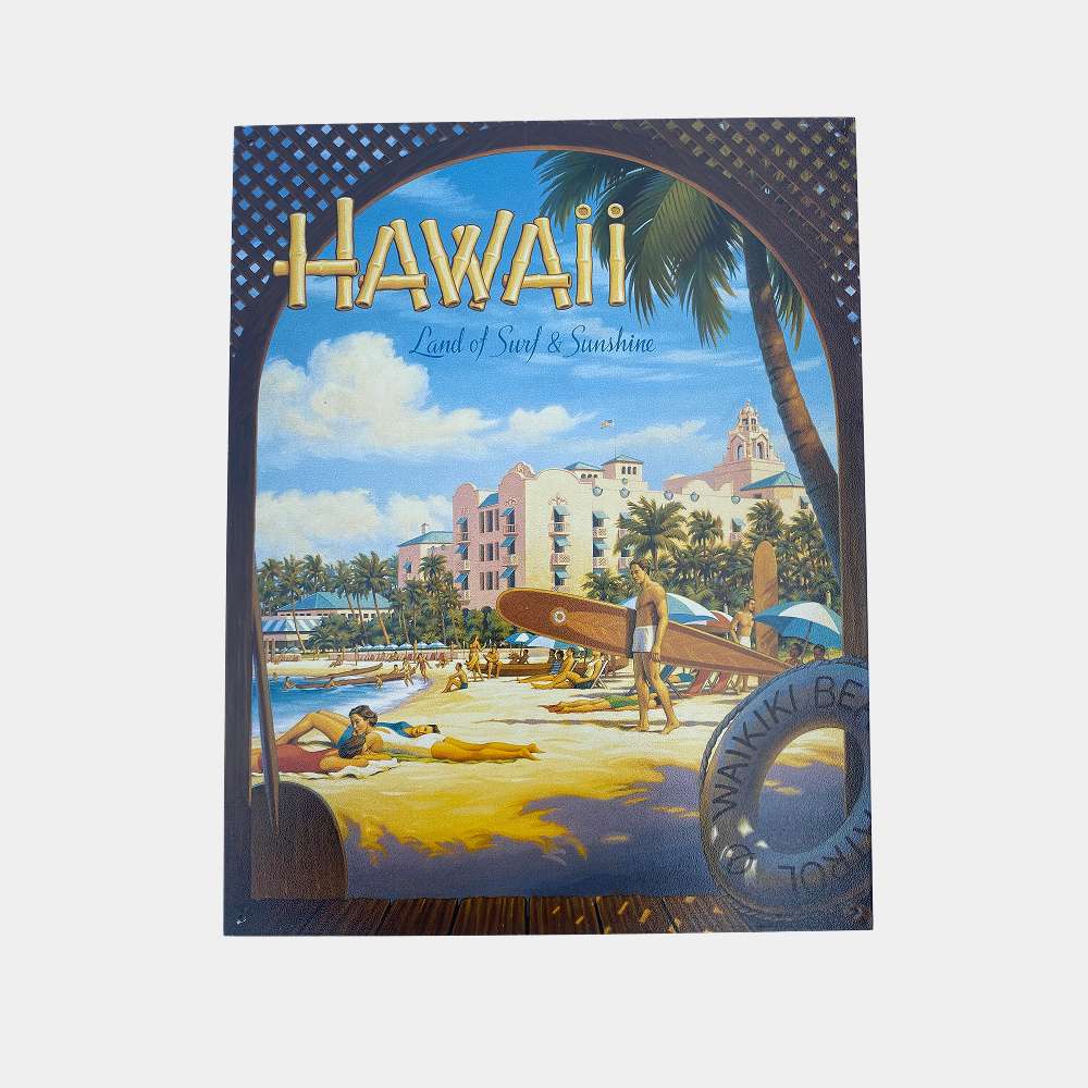 Vous allez apprécier son style vintage, vous reconnaîtrez la plage de Waikiki à Honolulu avec le Royal Hôtel en arrière plan.