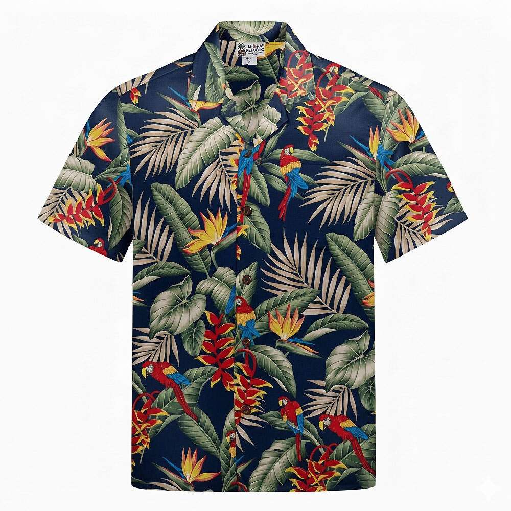 Cette chemise hawaiienne republic Macaw nous viens des ateliers ALOHA REPUBIC à Honolulu à Hawaii est une pièce originale.