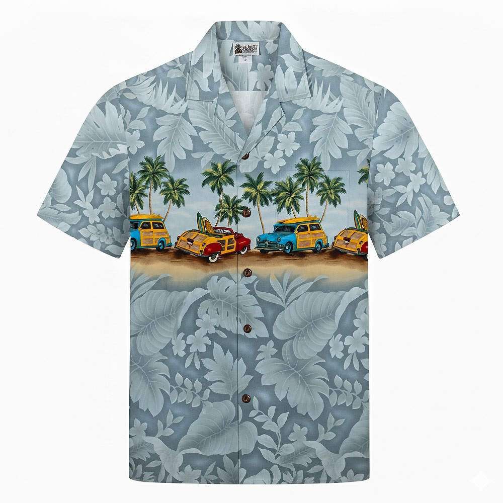 Cette Chemise hawaiienne woodie grey nous vient des ateliers ALOHA REPUBIC à Honolulu, c’ est une pièce originale. Avec avec ces motifs woodie et surf.