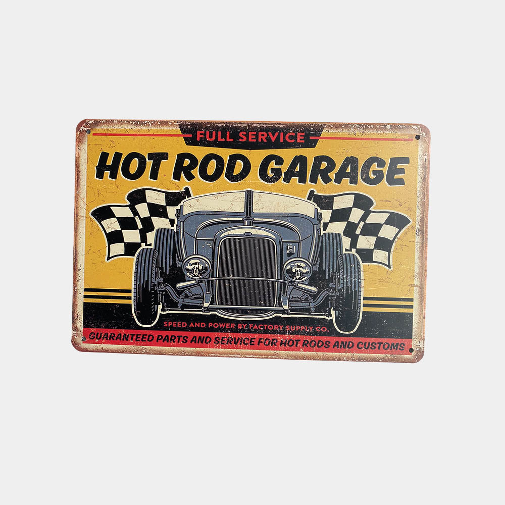 DEKORATIVES METALLSCHILD „Hot Rod Garage“.