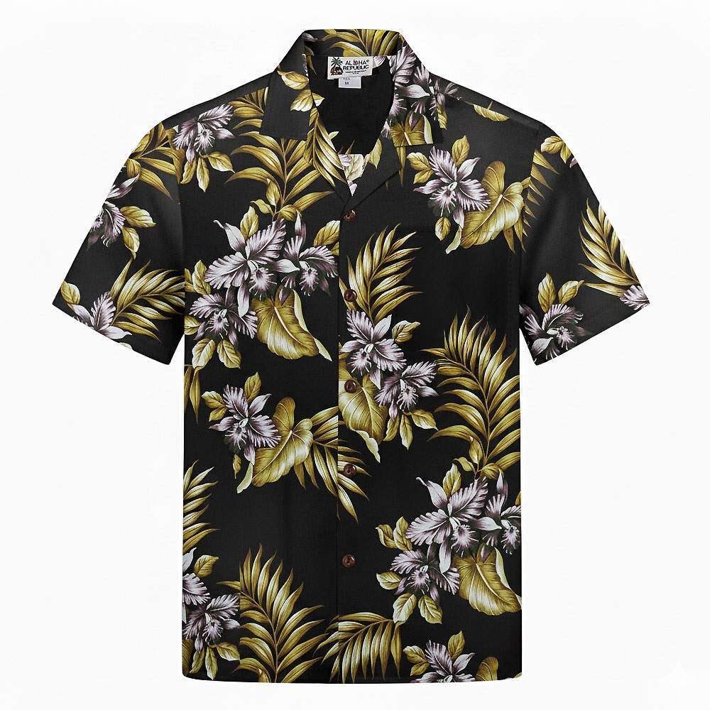 Cette Chemise hawaïenne Flower black nous vient des ateliers ALOHA REPUBIC à Honolulu. Avec son motif à base de fleurs tropicales sur fond noir, elle est particulièrement réussie et classe. C’est une de nos meilleures ventes