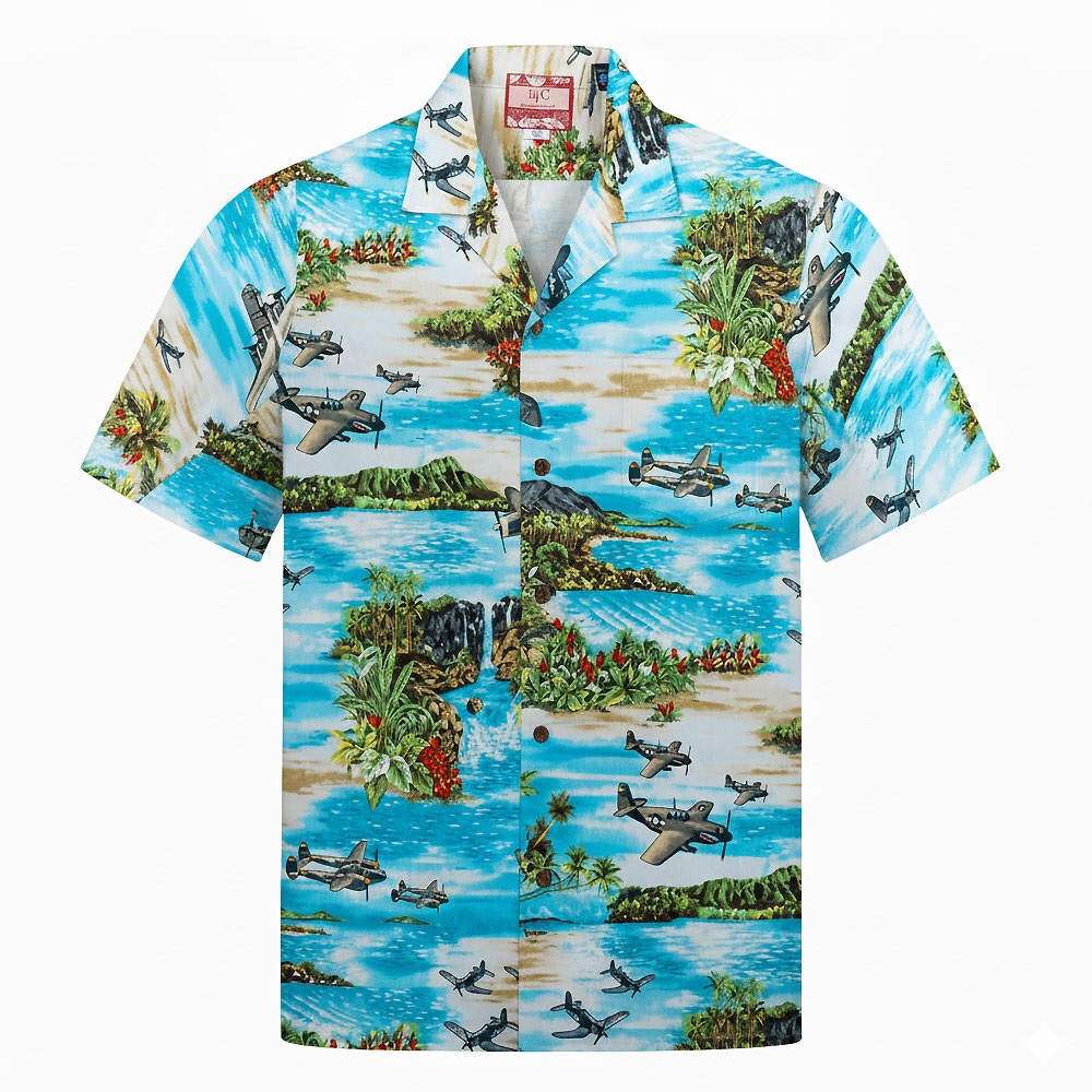 Les Chemises Hawaii ont été popularisées à la fin de la guerre du pacifique lorsque les militaires sont rentrés chez eux, important avec eux une partie de la culture des iles. Les Aloha shirts de type militaire sont un classique depuis toujours. Ce modèle est une réussite dans ce style. Cette chemise Hawaïenne nous vient des ateliers RJC à Honolulu (notre plus ancien fournisseur, marque fondée en 1953).