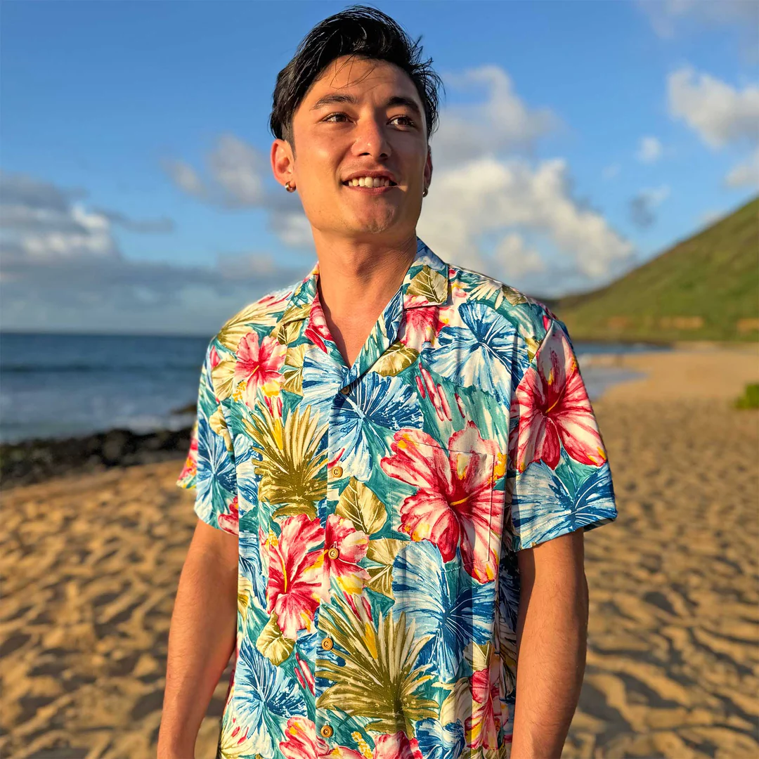 Ajoutez une touche de tropicale à votre garde-robe avec notre chemise hawaïenne Painted Hibiscus en jade. Cet imprimé audacieux et coloré présente l’emblématique fleur d’hibiscus dans un style peint à la main qui offre une explosion de couleur, ce qui en fait un choix parfait pour toute occasion festive. Adoptez l’ambiance vibrante et tropicale avec cette chemise Aloha accrocheuse.