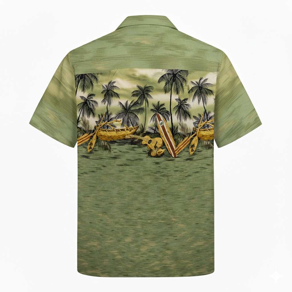 Est une entreprise basée sur l’ïle d’Oahu depuis 1993. Leur objectif est de maintenir une production locale mais également les traditions, le style Kama’Aïna et les modes de l’île vivantes. Ces chemises sont 100% coton, bouton cocotier.